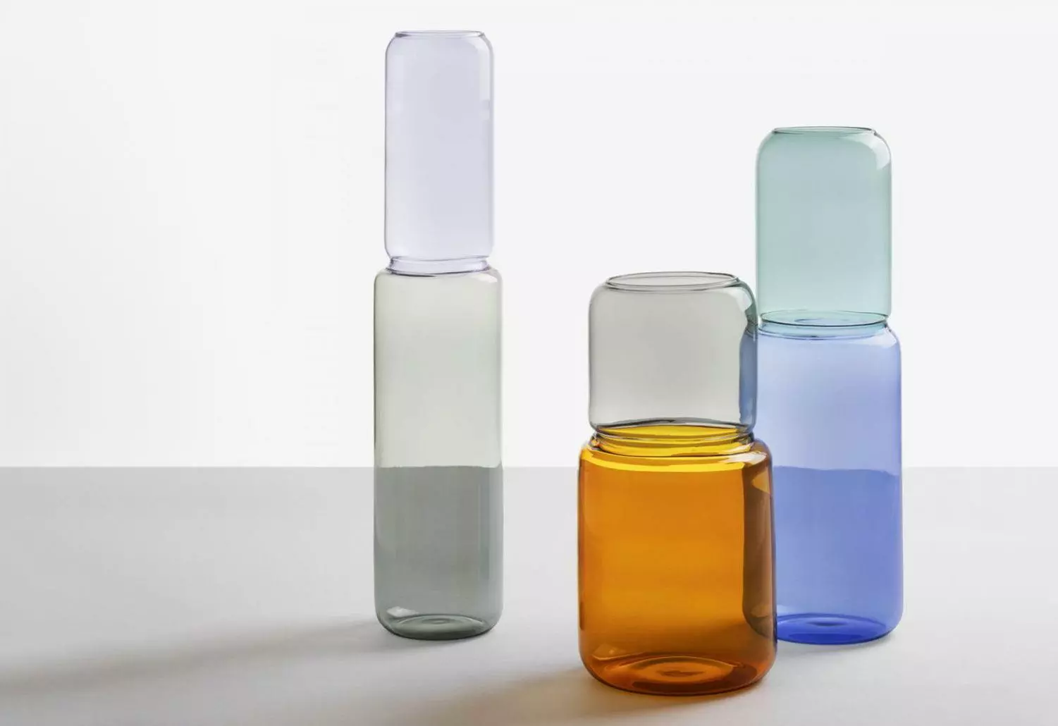 The revolve borosilicate glass vase is a beautiful two-tone vessel handmade in Italy. The dual colourway adds a subtle pop of colour to any interior setting, whether placed on a mantelpiece or dining table.